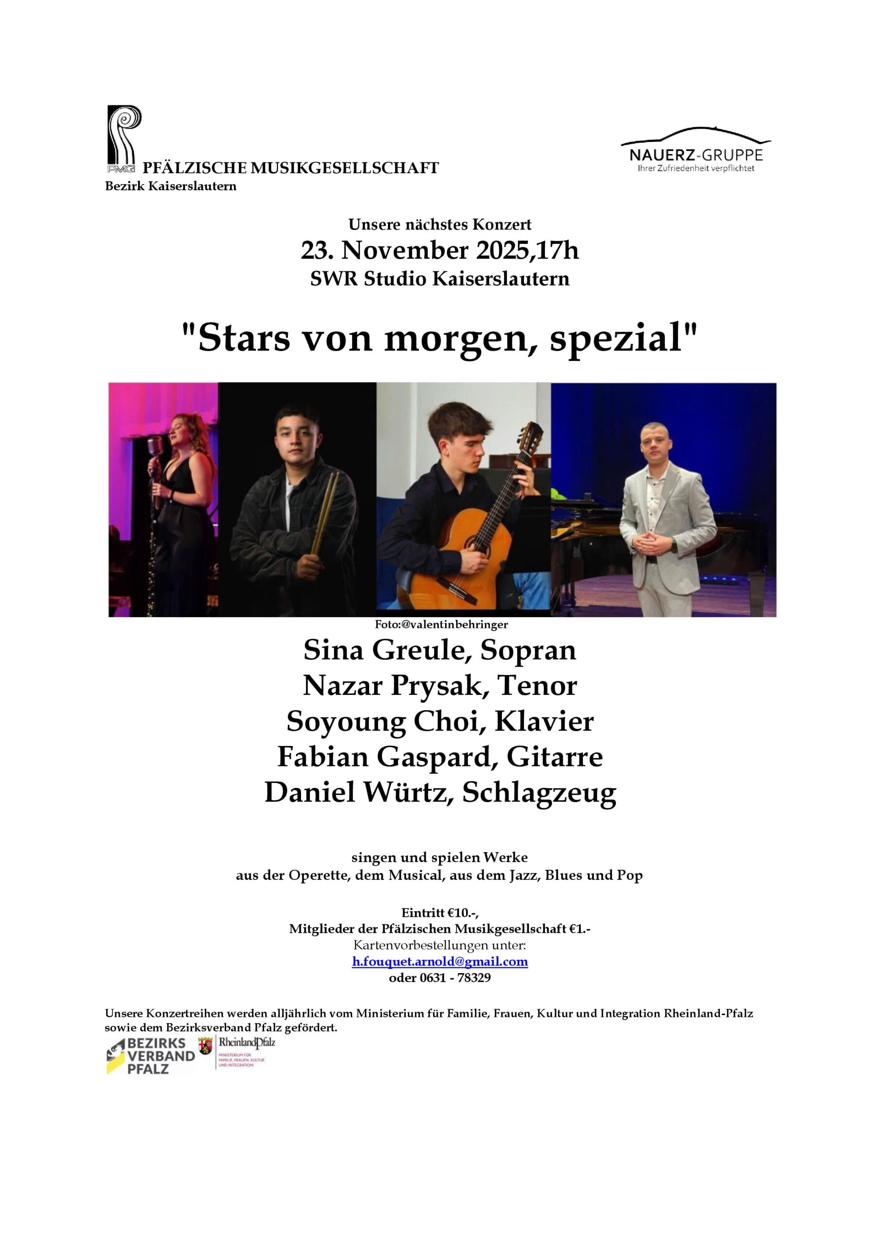 Kartenvorbestellungen unter: h.fouquet.arnold@gmail.com oder 0631-78329